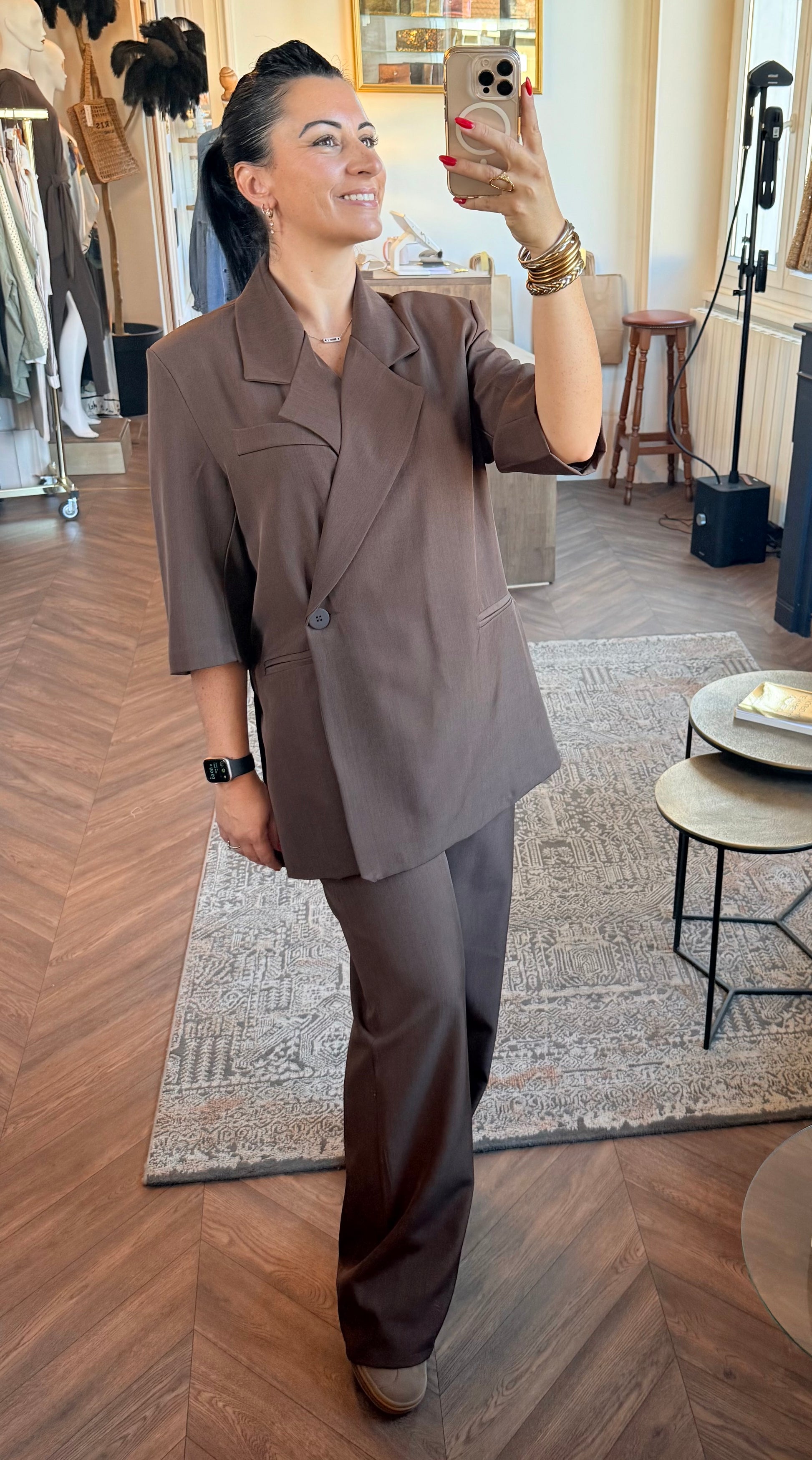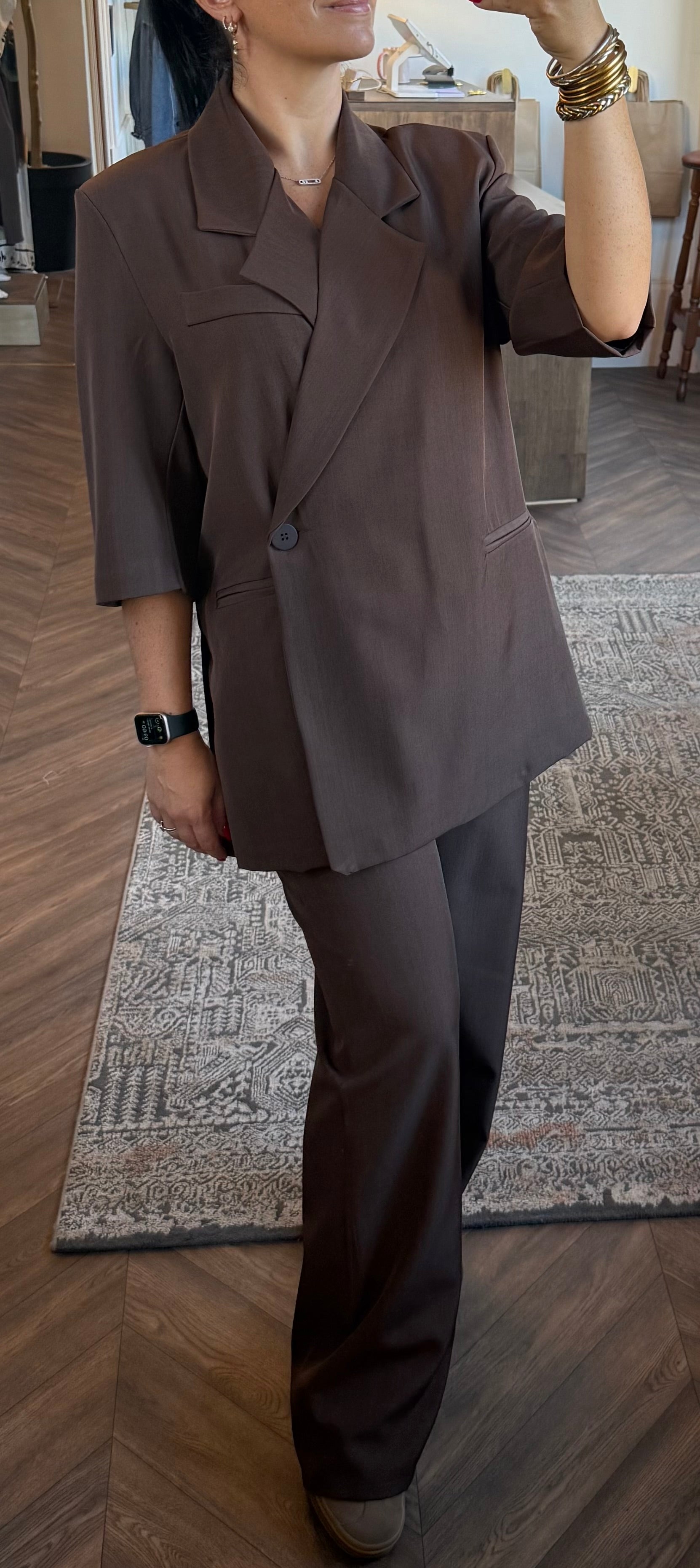 Blazer coupe oversize avec manches 3/4 et pantalon fluide taille élastique