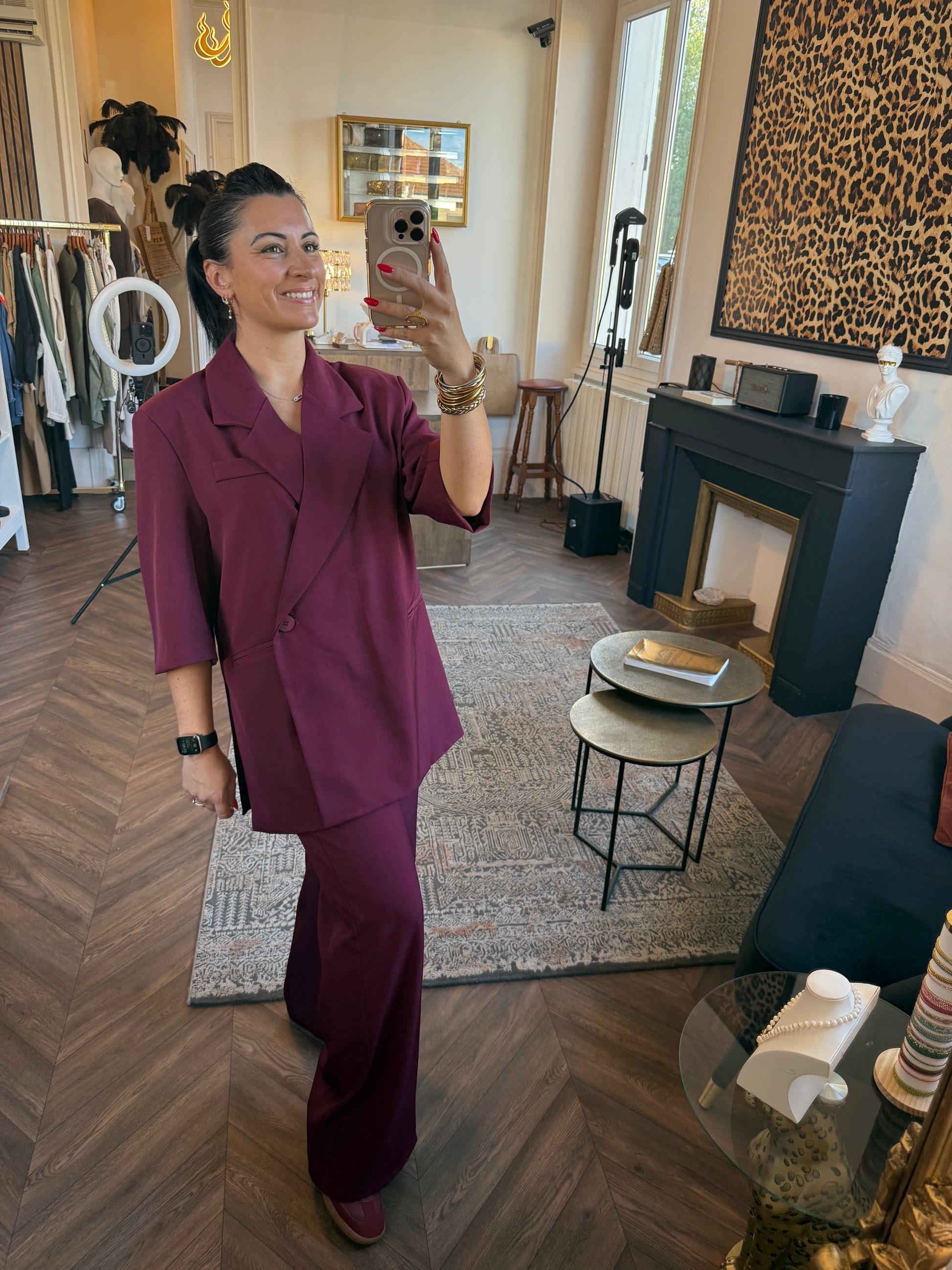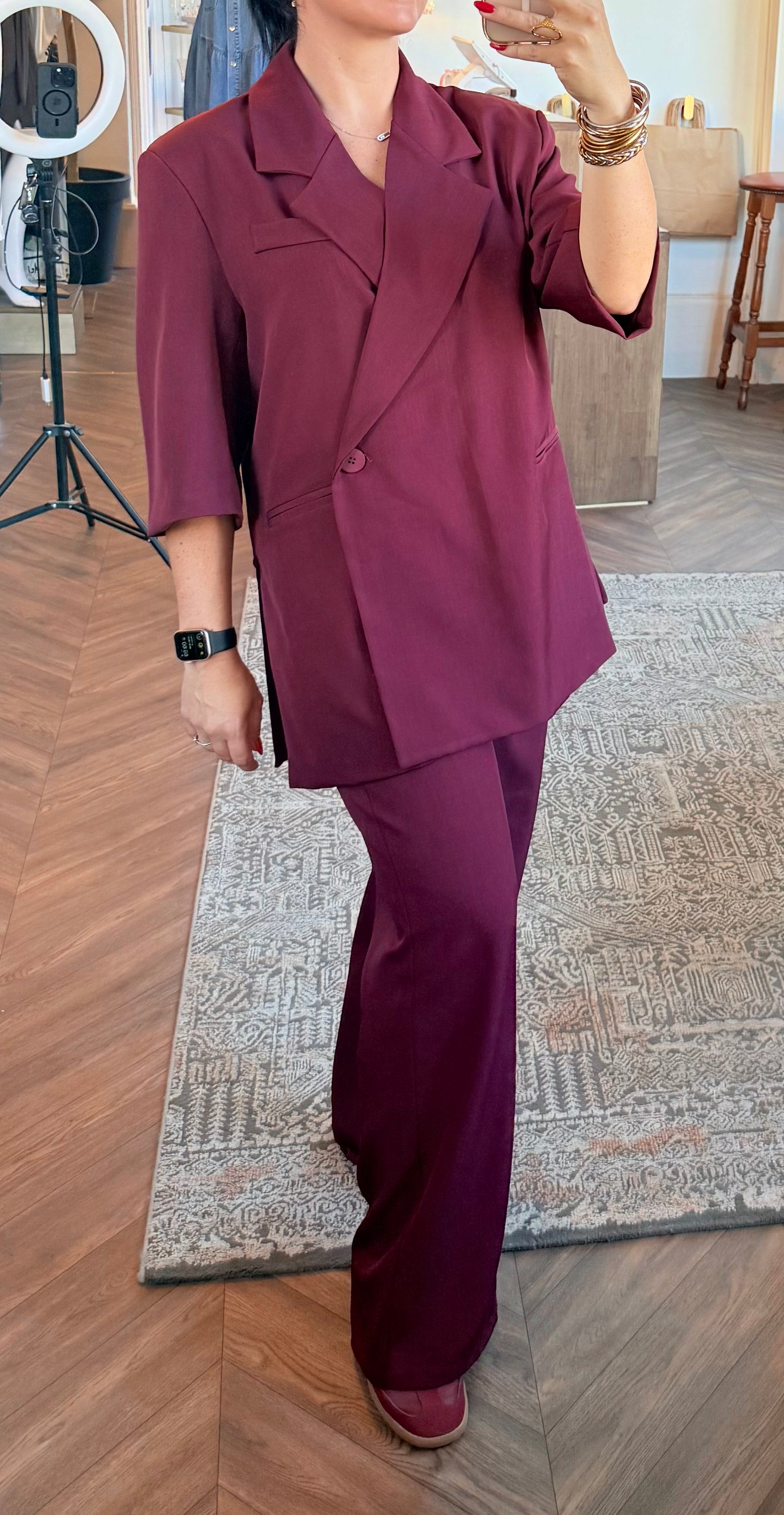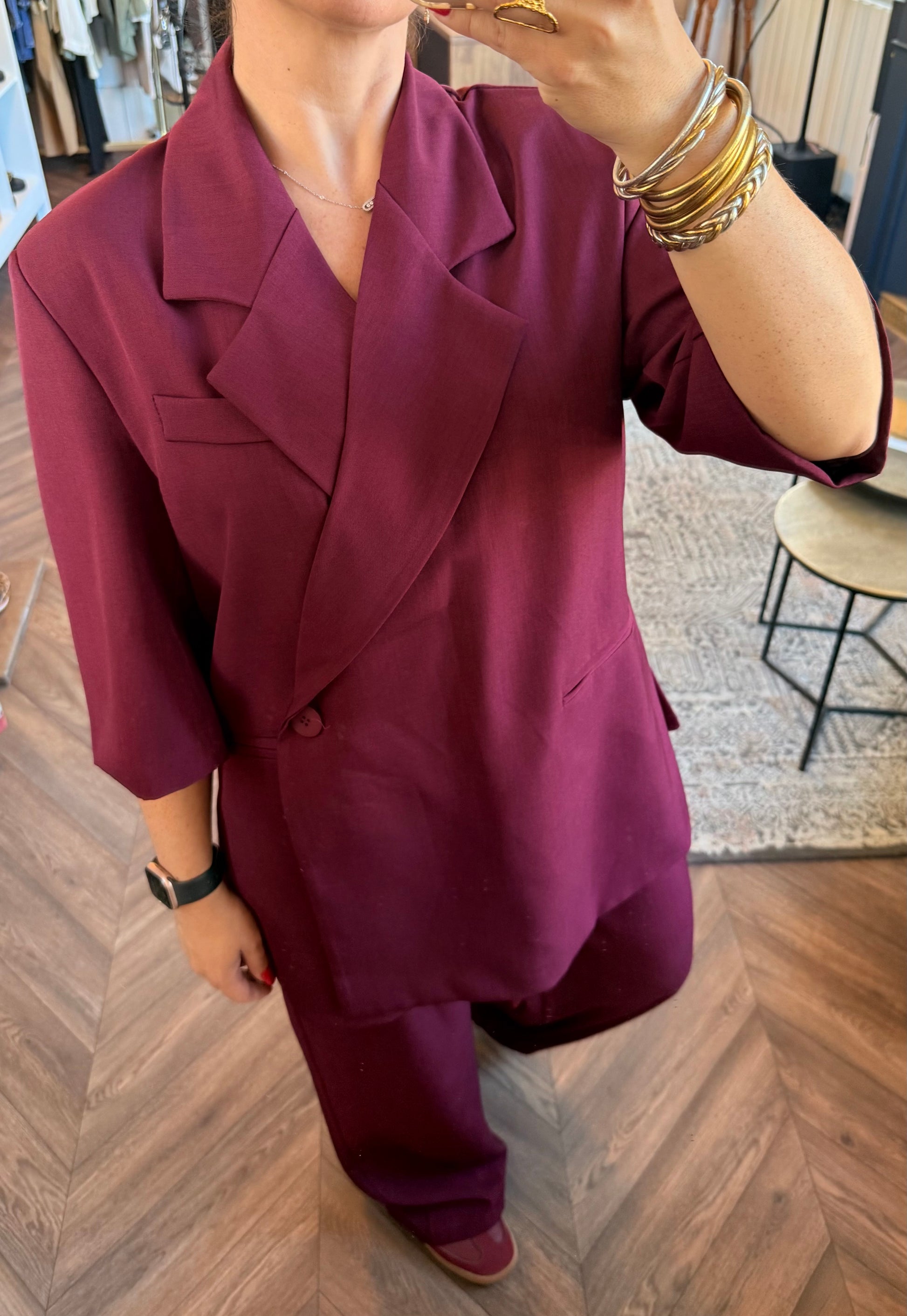 Blazer coupe oversize avec manches 3/4 et pantalon fluide taille élastique